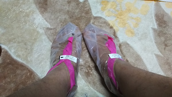1時間くらいこのパックを履いて、足の角質に美容液をたっぷりを浸透させ、後は洗い流して終了。